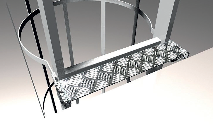 Kit piattaforma di riposo per scala verticale, progettato per aumentare sicurezza e comfort durante l’utilizzo. La piattaforma ha dimensioni pari a 310 × 420 mm.