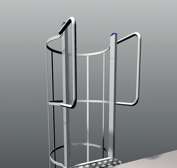 Maniglioni di accesso per scale con gabbia, progettati per agevolare la salita e la discesa in corrispondenza delle zone di sbarco. Migliorano la presa e la stabilità dell’utilizzatore, aumentando comfort e sicurezza durante le fasi di accesso e uscita dalla scala.
