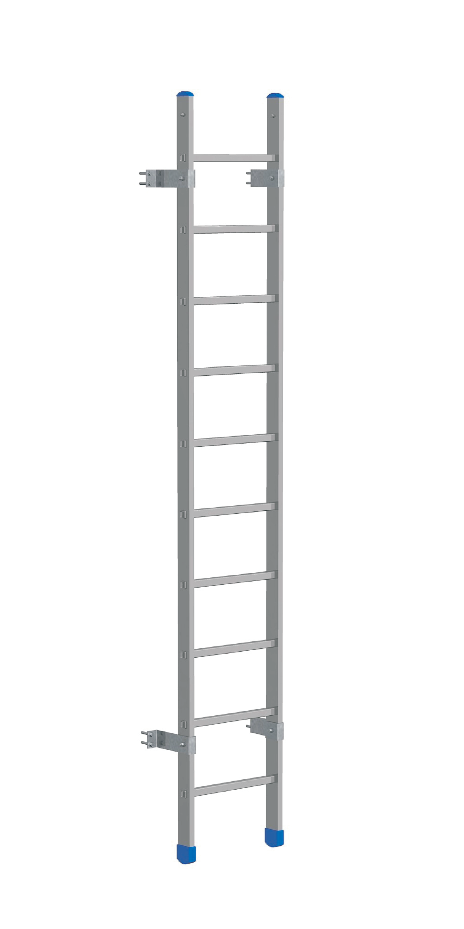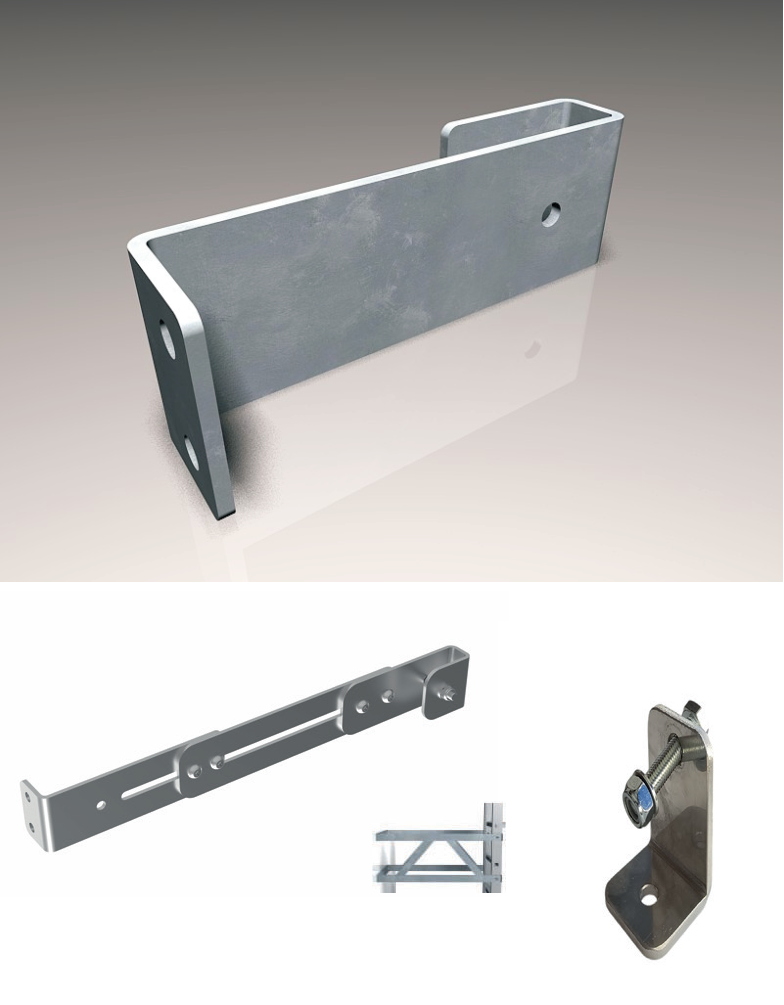 Gamma completa di staffe di fissaggio per scale con gabbia, pensata per adattarsi a diverse condizioni di installazione. Comprende staffe standard da 190 mm, staffe regolabili con escursione da 105 a 350 mm e da 0 a 35 mm, oltre a staffe a terra. In presenza di ostacoli sono disponibili staffe speciali fino a 650 mm (da prevedere in rapporto di una ogni due staffe standard) e staffe speciali oltre i 650 mm, realizzabili su richiesta con preventivo dedicato.